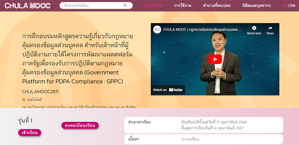 - หลักสูตรเชิงปฏิบัติการเกี่ยวกับการติดตั้งและใช้งานแพลตฟอร์มภาครัฐเพื่อรองรับการปฏิบัติตามกฎหมายคุ้มครองข้อมูลส่วนบุคคล